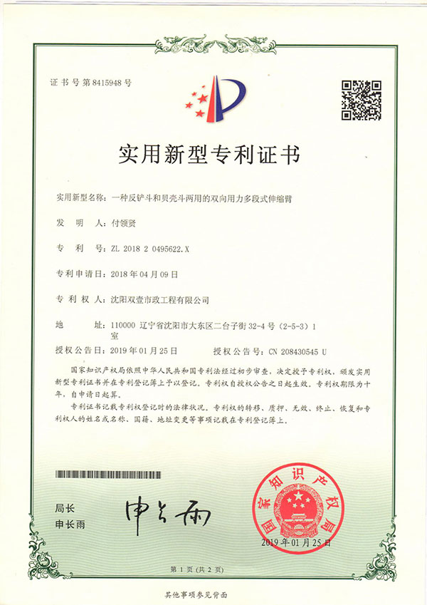 沈陽雙壹機(jī)械主要從事挖掘機(jī)伸縮臂、加長(zhǎng)臂、氣彈簧生產(chǎn)業(yè)務(wù)、挖掘機(jī)租賃業(yè)務(wù),生產(chǎn)研發(fā)18-55米伸縮臂,200米卷揚(yáng)挖掘器;公司生產(chǎn)的三節(jié)伸縮臂為雙向用力,可配帶挖掘斗與貝殼斗,超大斗容2.6立方;研發(fā)的氣彈簧可節(jié)油50%,加大斗容80%,提高大臂舉升力!挖掘機(jī)伸縮臂適用于地鐵、地下人防、沉井、河道清淤、高層樓基礎(chǔ)、管廊工程等深遠(yuǎn)坑作業(yè),產(chǎn)品選材優(yōu)良,設(shè)備工藝先進(jìn),質(zhì)量穩(wěn)定可靠,雙壹機(jī)械以質(zhì)量求生存、以信譽(yù)占市場(chǎng)的經(jīng)營(yíng)原則為全國(guó)用戶提供優(yōu)質(zhì)產(chǎn)品。